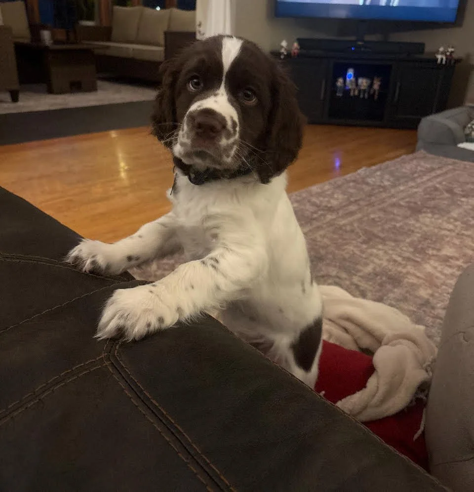 We got our boy from Kemerer Springers in January 2021, and he has truly been a wonderful addition to our family. His intelligence shines through, especially with his fantastic nose for scent tracking. Whether he's lounging on the couch beside us enjoying some downtime or joining us for exciting camping adventures, he encompasses the perfect blend of energy and affection. We’re already looking forward to welcoming a second dog from the Kemerer family in the future, as we can't imagine our lives without the joy and companionship that these beautiful spaniels bring!
